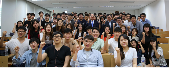 올 여름 “AFTER YOU 프로그램” 참가 학생들을 위한 사전 멘토링 행사가 3일 오후 성호관 소극장에서 열렸다. 김동연 총장과 청야 회원들이 멘토로 참여해 학생들을 격려하고 응원했다. 이 날 행사에는 “AFTER YOU 프로그램 – 2016 여름 아주 글로벌 캠퍼스”에 참가하는 우리 학교와 인근 지역 타 대학 학생 120여명과 멘토 10여명, 교직원 등 160여명이 함께 했다. 행사는 김동연 총장의 멘토 소개로 시작해 ▲참가 학생들의 발표 ▲멘토 프레젠테이션 ▲멘토와 함께 하는 토크쇼 순으로 진행됐다. 멘토로는 어려운 환경 탓에 야간 고등학교나 야간 대학을 다니며 스스로의 길을 만들어 온 사람들의 모임인 ‘청야’ 회원들이 참여했다. 우리 학교 김동연 총장과 윤종규 KB금융지주 회장, 강동헌 코메론 대표, 박계신 다이아텍코리아 회장, 박시형 쌤앤파커스 고문, 전광진 성균관대 교수, 조성일 한국NSK 사장, 황적화 법무법인 화우 변호사가 참석했다. 멘토들은 무대에 올라 경험담과 젊은이들에게 보내는 조언 등을 전했다. 그 외에도 “AFTER YOU 프로그램”에 뜻을 같이하는 문덕영 AJ가족 부회장과 이삼구 해동산전 대표가 함께 자리해 학생들을 응원했다. 김동연 총장은 “도전과 배려, 상생이 바로 아주대가 추구하는 가치이며 여러분이 참가할 “AFTER YOU 프로그램”에도 그러한 취지가 담겨 있다”며 “함께 하는 타교 학생들과 아주대학교 학생들이 서로를 배려하고 이해하며 우정을 쌓아가길 바란다”고 말했다. 본 행사 이후 학생들과 멘토들은 성호관 앞 광장에서 비어파티를 열고 대화의 시간을 이어갔다. 청야 회원인 김홍국 하림그룹 회장은 건강상의 이유로 이날 행사에 참석하지 못했지만 비어파티의 치킨과 맥주를 지원, 학생들을 격려했다. “AFTER YOU 프로그램 – 아주 글로벌 캠퍼스”는 어려운 환경 탓에 해외 경험을 쌓기 어려웠던 학생들을 위해 아주대가 만든 프로그램이다. 올 6월 지난해 여름과 겨울에 이어 세 번째 참가자가 선발되었으며, 그 규모가 확대됐다. 이번 여름에는 미국 미시간대학, 존스홉킨스대학, 워싱턴대학과 중국 상해교통대학, 북경이공대학으로 총 121명의 학생이 파견된다. 인근 지역 타 대학 학생 20명도 참여한다. “AFTER YOU 프로그램”은 참가자 선발 시 꿈과 의지를 기분으로 하며 영어와 학점 등은 전혀 고려하지 않는다. 학생 파견을 위한 재원은 전액 외부 기금을 통해 마련하고 있다. *사진1- 참석한 멘토들을 소개하고 있는 김동연 총장 *사진2- 자신의 경험담을 소개하며 학생들을 격려한 윤종규 KB금융 회장 *사진3- 박시형 쌤앤파커스 고문의 진행으로 열린 멘토들과의 토크쇼 *사진4- 야외에서 진행된 비어파티