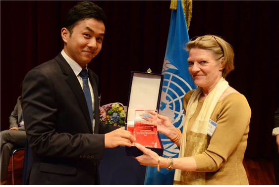 우리 학교 기계공학과 유승범 학생(사진 왼쪽)이 UN 창립 70주년을 맞아 개최된 ‘UN의 날 영어 스피치 대회’ 대학생 부문에서 우승했다. 이 대회는 UN 아·태경제사회위원회 동북아지역사무소가 주최했다. 유승범 학생은 을 주제로 연설해 최고상인 ‘반기문상’을 받았다. 연설에서 그는 “더 멋진 미래를 위해서는 지구촌이 당면한 문제를 책이 아닌 두 눈으로 확인하고 그 본질을 이해하는 게 가장 중요하다”고 말했다. 이번 대회 본선은 지난 10월22일 인천 송도에서 45명의 학생이 참가한 가운데 열렸다. 지난 9월21일부터 9월30일까지 치러진 예선을 통과한 참가자들은 , , 등의 주제로 발표했다. 유승범 학생은 “목적 없는 공부를 위해 젊음을 낭비하기 보다는 여러 경험을 통해 진정 하고 싶은 일을 먼저 찾자는 게 소신”이라며 “저에게 많은 기회를 주는 학교와 늘 응원해 주시는 박영무 기계공학과 교수님께 감사드린다”고 소감을 밝혔다.