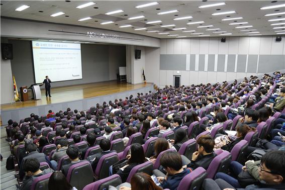 우리 학교가 시작한 “After You” 프로그램- 2015 여름 아주 글로벌캠퍼스에 대한 설명회가 16일 오후 6시 율곡관 대강당에서 열렸다. 이 프로그램에 대해 관심 있는 학생과 교직원 등 500여명이 참석해 대강당을 가득 매웠다. 소병천 대외협력처장이 진행을 맡아 “After You” 프로그램의 ▲취지와 ▲특징에 대해 소개하고 ▲선발 일정 및 방법을 안내했다. 이 프로그램을 통해 학생들이 파견될 미국 미시간대학과 존스홉킨스대학, 중국 상해교통대학에 대한 설명도 곁들였다. “After You” 프로그램은 김동연 총장의 주도로 학교가 시작한 새로운 프로젝트다. 여러 어려움 탓에 해외 경험을 쌓기 힘들었던 학생들에게 해외 집중 연수의 기회를 주겠다는 것. 학생들의 항공료와 교육비용 등은 전액 장학금으로 지원되며 여기에 필요한 재원은 외부 기금 모금으로 마련할 예정이다. “After You” 프로그램의 첫 시작으로 학교는 미국 미시간대학과 중국 상해교통대학에 각각 30명, 20명의 학생을 파견한다. 올 여름 방학 4주 동안 진행되는 이번 프로그램은 기존의 해외 연수와는 차별화된 고강도 집중 프로그램으로 구성된다. 아주대 학생을 위해 맞춤형으로 구성된 매주 15~20시간의 집중 언어 수업에 현지 대학생 버디와의 언어실습, 다양한 체험 활동 등이 마련되어 있다. 미시간대학·상해교통대학 프로그램에는 경기도에 거주하는 타 대학 학생에게도 참여 기회를 줄 예정이다. 한편 “After You” 프로그램의 일환으로 학교는 미국 워싱턴D.C.에 위치한 존스홉킨스대학 국제대학원(SAIS)에도 학생 30명을 파견한다. 참가자들은 고강도 영어 교육 뿐 아니라 국제기구 방문·명사 특강 등 국제관계 분야에 특화된 교육을 받게 된다. 이 프로그램은 아주대 재학생만을 대상으로 하며 반액 장학금을 줄 예정이다. 최종 참가자 선발은 서류 심사와 면접을 통해 진행한다. 참가 신청은 오는 30일까지 받는다. 학교는 꿈과 의지가 높은 재학생을 적극 발굴하기 위해 자기 추천 뿐 아니라 친구·교수·직원 추천제도 병행한다. 두 번째 재학생 대상 “After You” 설명회는 오는 27일 오후 5시 율곡관 대강당에서 개최된다. ※“After You” 프로그램 자세한 내용 보기