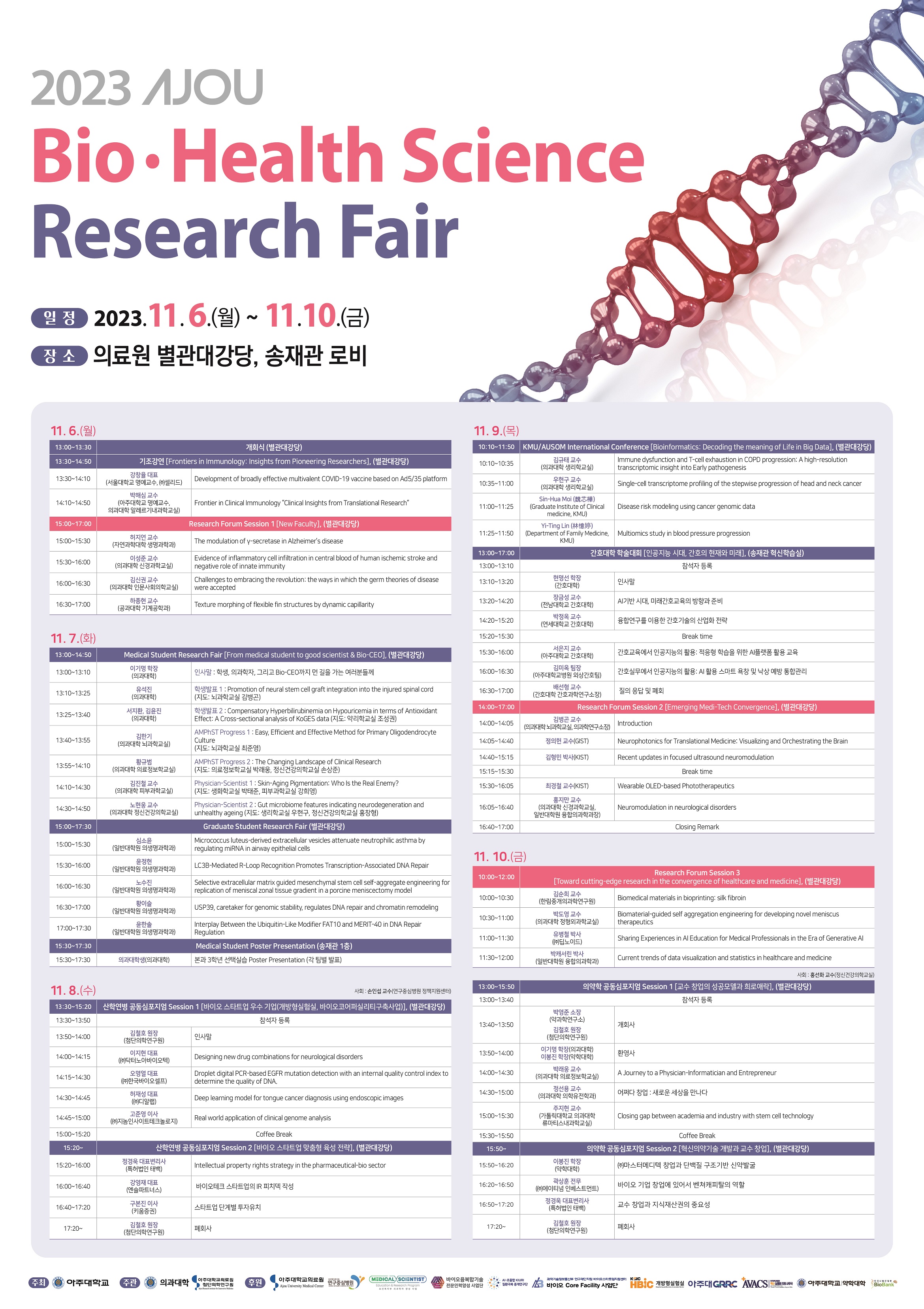 우리 학교가 지역 산업체와 손잡고 고령층의 미극복 질환 대응을 위한 기술 개발에 본격 나선다. 아주대 고령화 미극복질환 대응기술 연구센터(센터장 정이숙 약학과 교수, Geriatric unconquered Disease Research Center, 이하GDRC)는 지난 24일 아주대 약학관에서 ‘킥오프 워크숍’을 개최하며 바이오 분야 산학연 협력 사업 추진에 나섰다. 워크숍에는 연구에 참여하는 아주대 약학과·의학과·대학원 분자과학기술학과 교수진 13명과 이봉진 아주대 약학대학 학장, 김상인 아주대 산학협력단장, 정운혁 경기도 기술협력팀장, 참여기업 관계자들이 함께 자리했다. 이번 워크숍은 GDRC가 경기도가 주관하는 산학연 협력 사업인 경기도 지역협력연구센터(GRRC) 사업으로 선정된 배경을 공유하고, △기술 이전 △사업화 지원 △공동연구 등 향후 추진 방향을 공유하는 자리로 마련됐다. GDRC는 △마커/효능 기반 기능성 소재 및 의약 후보물질 발굴 △저분자·항체 의약품 개발 및 물성 연구 △임상 빅데이터/인공지능 기반 환자 대응전략 수립 등의 산학연 연구를 수행해나갈 예정이다.워크숍은 △참여 연구원 및 참여 기업 소개 △경기도 지역협력연구센터(GRRC) 운영 전략 및 사례 공유 △아주대 고령화 미극복질환 대응기술 연구센터(GDRC) 소개 △산학연 연계협력 활성화 방안 토론 △네트워킹 순서로 진행됐다. 정이숙 아주대 GDRC 센터장은 “초고령화 사회 진입을 앞둔 시점, 노인 환자 맞춤형 바이오 의약품 원천기술 개발과 상용화를 위해 지역 산업체와 협력하고자 한다”며 “고령화 미극복질환 대응기술 연구센터를 지역의 산학연 바이오 연구 플랫폼으로 구축해 긴밀히 공동연구를 수행해나갈 예정”이라고 말했다. 한편 아주대 고령화 미극복질환 대응기술 연구센터(GDRC)는 지난 6월 경기도 지역협력연구센터(GRRC) 사업 바이오 분야에 신규 선정됐다. 센터는 경기도와 수원시로부터 2029년 6월까지 6년간 매년 6억 원의 연구비를 지원받아 연구과제를 수행할 예정이다. 이번 연구에는 교수진을 포함해 총 64명의 아주대 연구원과 경기도 소재 10개 기업(엔비피헬스케어, 쎌바이오텍, 에이엔케이, 매일헬스뉴트리션, 환인제약, 아이이씨코리아, 무진메디, 원진바이오테크놀로지, 코아스템켐온, 제이투에이치바이오텍)이 참여한다. 아주대는 고령화 미극복질환 대응기술 연구센터의 축적된 기술력과 혁신적인 아이디어를 통해 참여기업에 새로운 성장 동력을 제공, 지역 사회와의 공생 발전 모델을 구축해 나갈 계획이다. 아주대 고령화 미극복질환 대응기술 연구센터(GDRC)를 소개하는 정이숙 센터장아주대 고령화 미극복질환 대응기술 연구센터(GDRC) 킥오프 워크숍 현장사진
