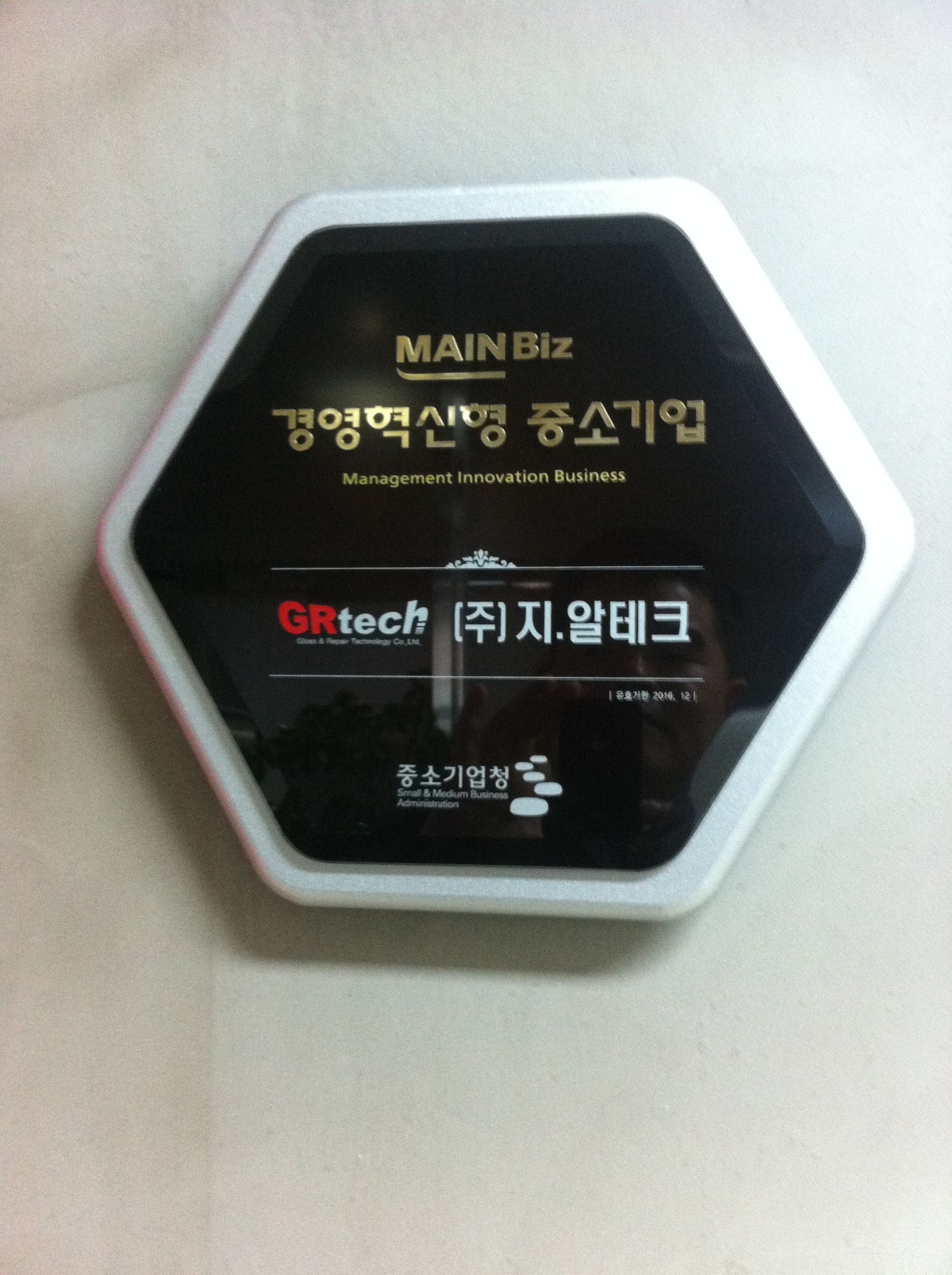 중앙에 김일* 동문 방문대상자 성 함 : 김일* 대표이사( 공학대학원 석사과정 환경공학과 2000년도 졸업 ) 소 속 : ㈜지알테크 방문자 성명 : 김윤기(대학발전본부장), 이강준, 황원복(대학발전본부) 방문일시 : 2015년 6월 9일 13시 30분 방문장소 : ㈜지알테크( 경기도 화성시 동탄면 송리 663-37 ) 자동차 내외장 관리 전문기업인 ㈜지알테크는 1994년 8월 설립한 산업용 자재 유통회사인 태영화학을 모체로 한다. 2001년 4월 ㈜G.R tech를 설립하여 미국 the PaintBull사와 계약을 체결하고 PaintBull System의 한국 판매, 교육에 대한 독점적 권리를 획득하였다. 2001년 7월 수원시 인계동 사옥을 준공하여 교육센터를 열었고, PaintBull 홈페이지를 개설하였다. 2003년 10월에는 국내 최초로 자동차용 광촉매 코팅제를 개발, 시판하였다. 사업 초기부터 자동차 관련 후진양성을 위한 교육부분에 관심이 많아 2001년 9월 신성대학을 시작으로 송원대학, 정수기능대, 대림대학, 신흥대학, 삼육대학, 화성폴리텍 대학, 신진자동차고등학교 등 자동차관련 교육기관과의 산학협력 및 실무교육 위탁사업으로 협력관계를 유지하였고, 전국 전동차학과 교수의 외장관리 연수 등 교원연수도 맡아서 이어오고 있다. 사업의 확장을 위하여 2004년 4월 스피스헥커 대리점 지정, 일본 MG사와 독점판매권 계약, 2007년 11월 일본 AQTEC과 독점계약, 2009년 3월 홀란드 골드드레곤사와 총판 제휴 및 인력,기술,교육에 관한 협약을 하였고, SK글로벌 전문가 교육, 전국자동차 광택 경진대회 개최, 전국자동차 외장관리 광택경연대회 등 다양한 활동으로 2010년 8월 창업경영인 대상을 수상하였다. 2011년 1월에는 최첨단 고급차량 썬팅용 V-KOOL 마스터 프랜차이즈와 국내공급 계약을 하였고, 2013년에 100호 점을 돌파하였다. ‘CARUP’이라는 브랜드로 광택제, 세척제, 방향제 등 다종다양의 자동차 용품을 국내시장에 공급하고 있으며, 현대자동차의 ‘블루핸드’와 기아의 ‘오토큐’ 센타에도 자동차 관리용품을 공급하고 있다. 2008년 6월에는 수원고색동 수원산업단지에 사옥을 신축하여 이전하면서 트레이닝 아카데미를 열었고, 자사 제품의 생산을 위한 공장을 오산에 보유하고 있다. 사세확장에 따라 2013년 3월에 동탄산업단지에 사옥을 신축하여 확장, 이전하였다. 현재 동탄 사옥에는 각종 보세물품의 보관, 배송을 위한 물류공간과 교육과 홍보를 겸한 스튜디오, 자동차 튜닝공간, 김동은 프로레이서를 포함한 레이싱 팀 등이 입주해 있다. 김일* 동문은 2000년에 공학대학원 환경공학과 석사과정, 2003년에는 CKO과정 3기, 2008년도에는 공공정책대학원 부동산최고위과정을 졸업한 만학도로서 석사과정에서는 원우회 회장으로서 봉사하였다. 각종 모임을 성실하게 주도적으로 이끌어가는 타입으로 지인들의 신망이 높다. 아울러, 새로운 분야에 끊임없이 도전하고 변화를 추구하는 속에서도 성실하게 사업을 이끌어오고 있어, 향후 최고의 종합 자동차 관리그룹으로 성장하려는 꿈을 키우고 있다.