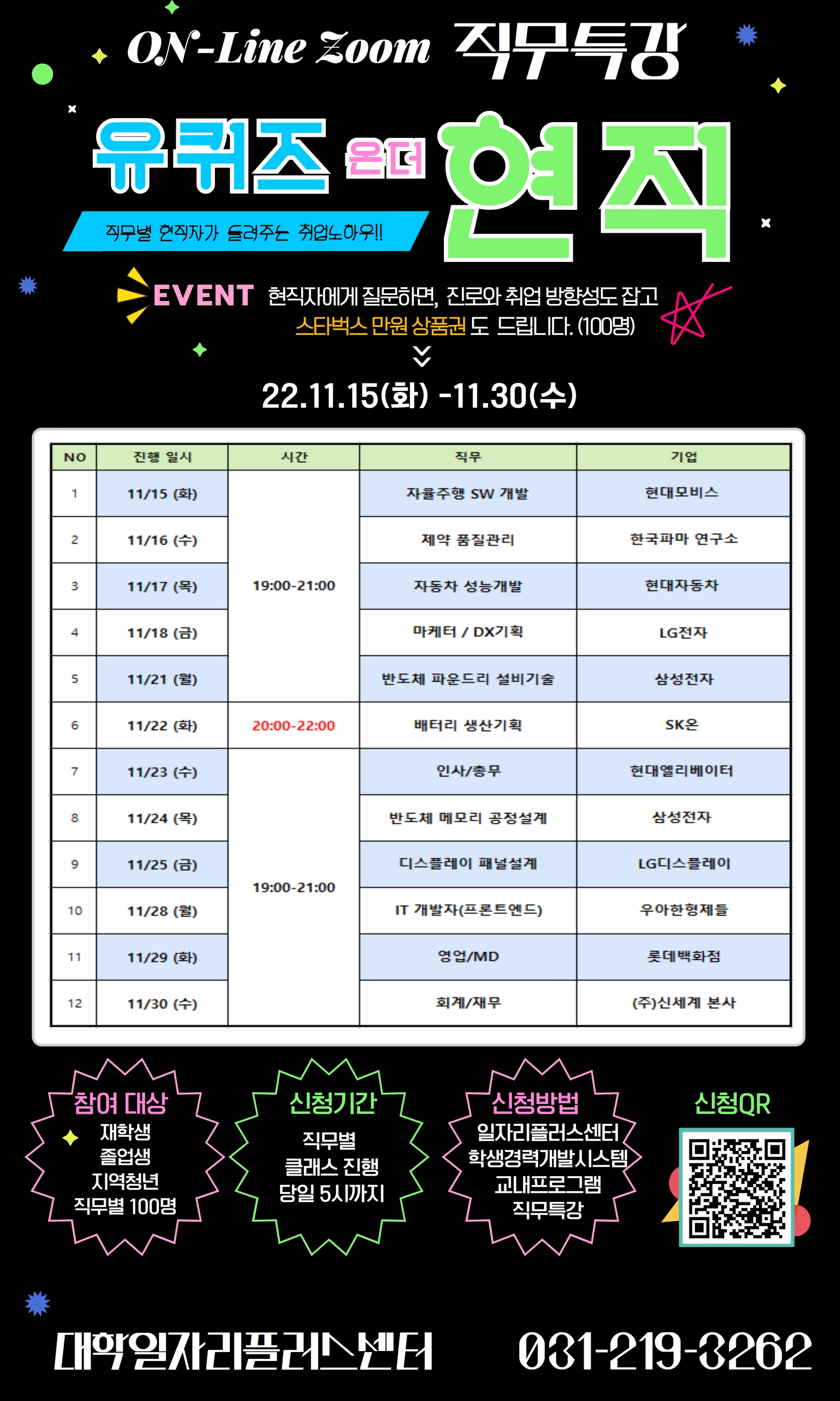 | 17013 | 취업 | 대학일자리플러스센터 | 2022-11-11 | ||