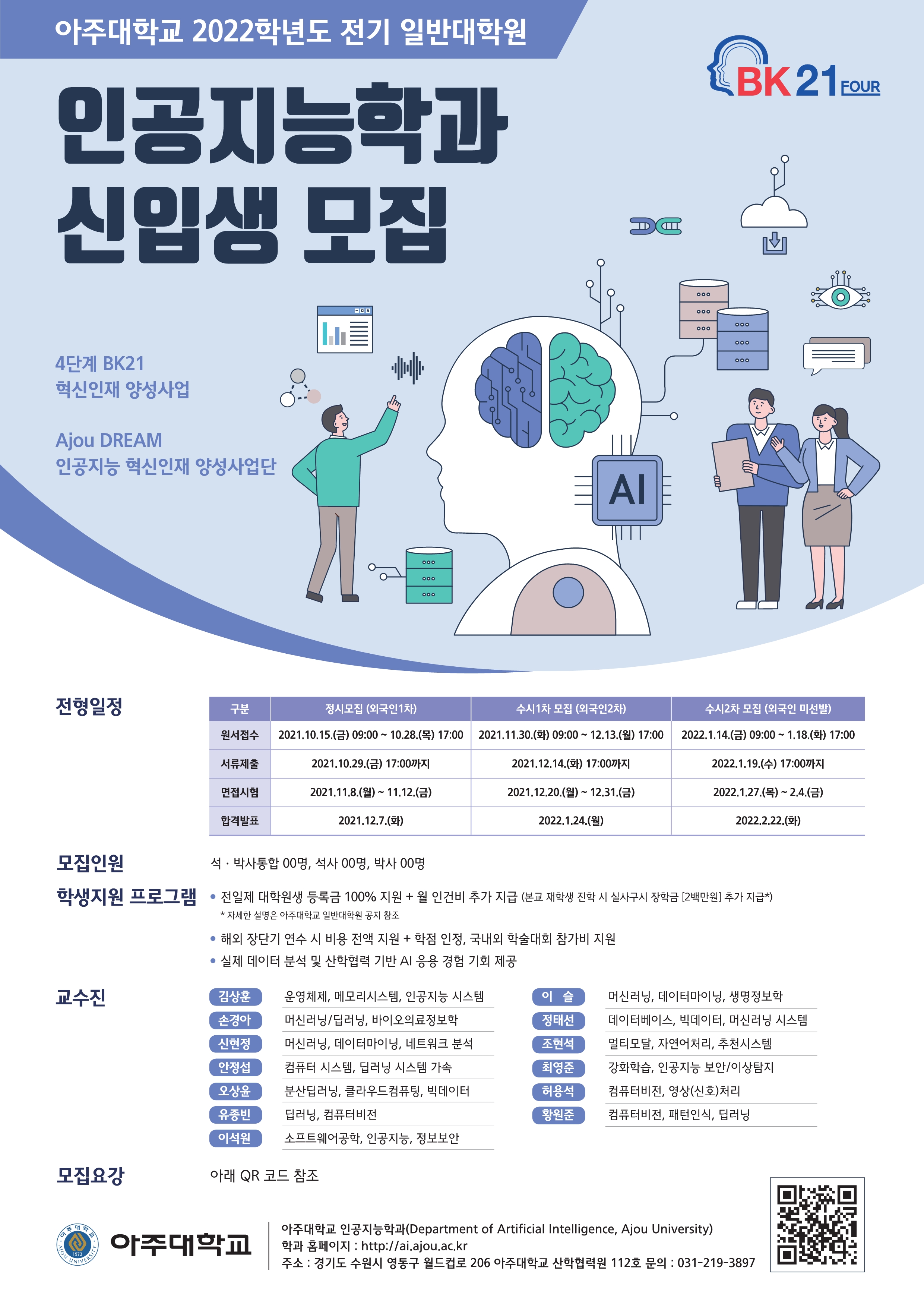 [대학원 인공지능학과] 2022학년도 전기 수시1차 신입생 모집 안내
