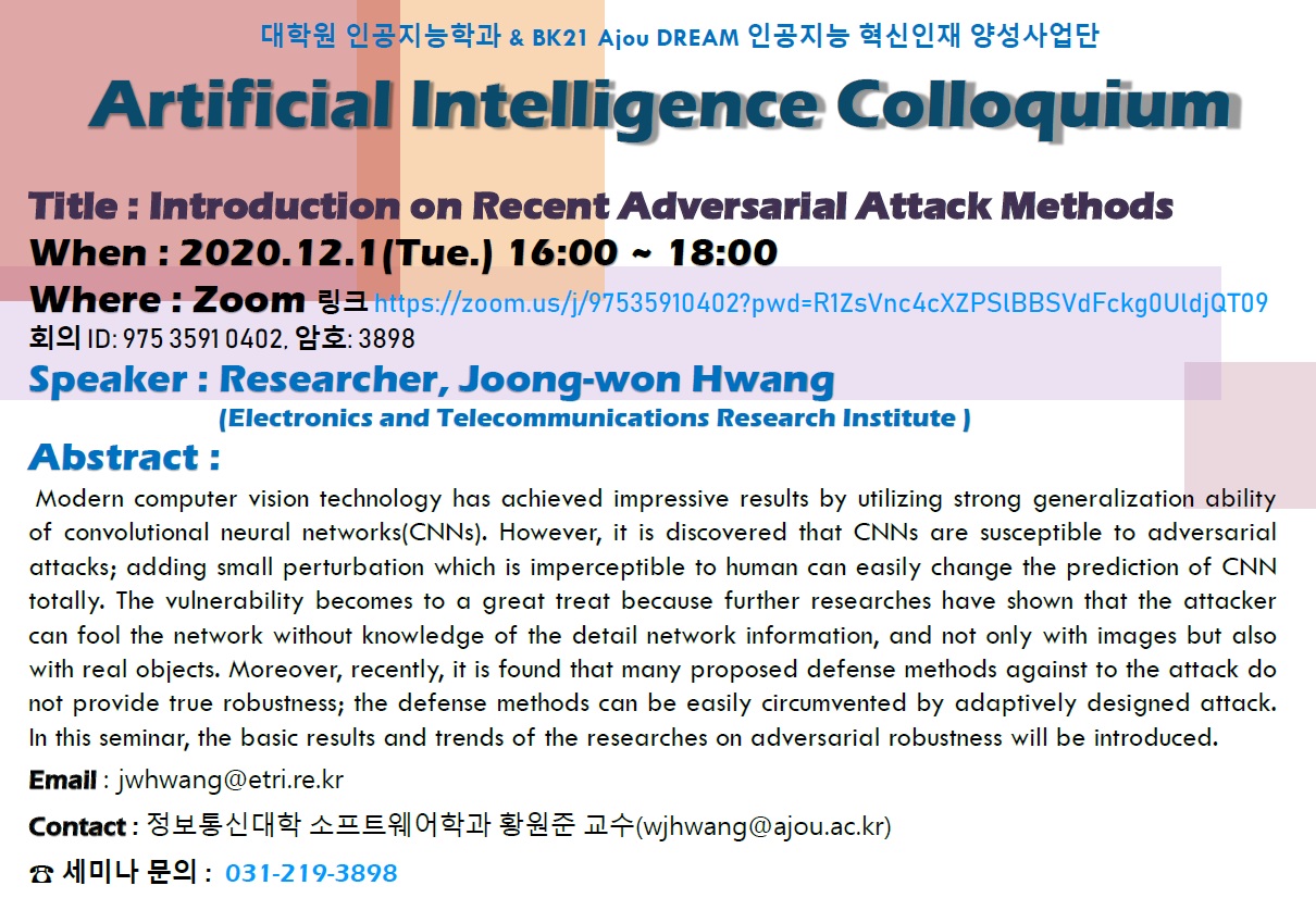 Artificial Intelligence Colloquium [대학원 인공지능학과 콜로퀴엄] 개최 안내