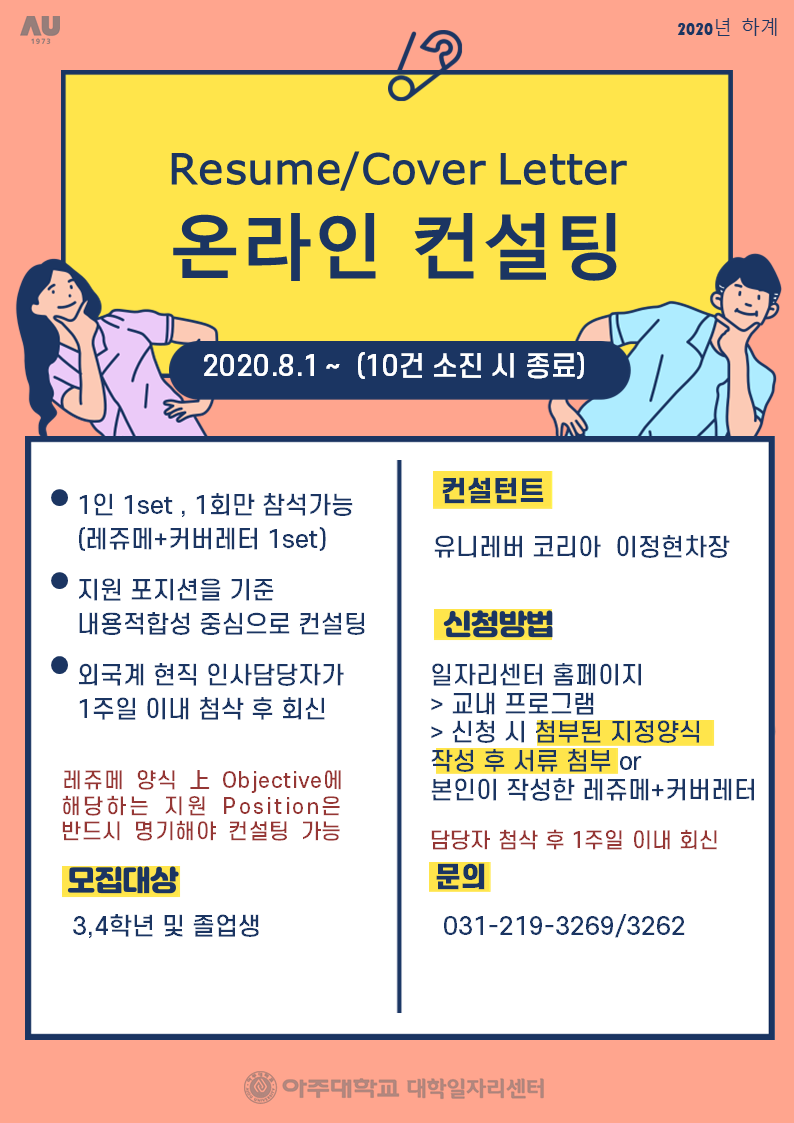 [대학일자리센터]Resume/Cover Letter 온라인 컨설팅 실시 안내