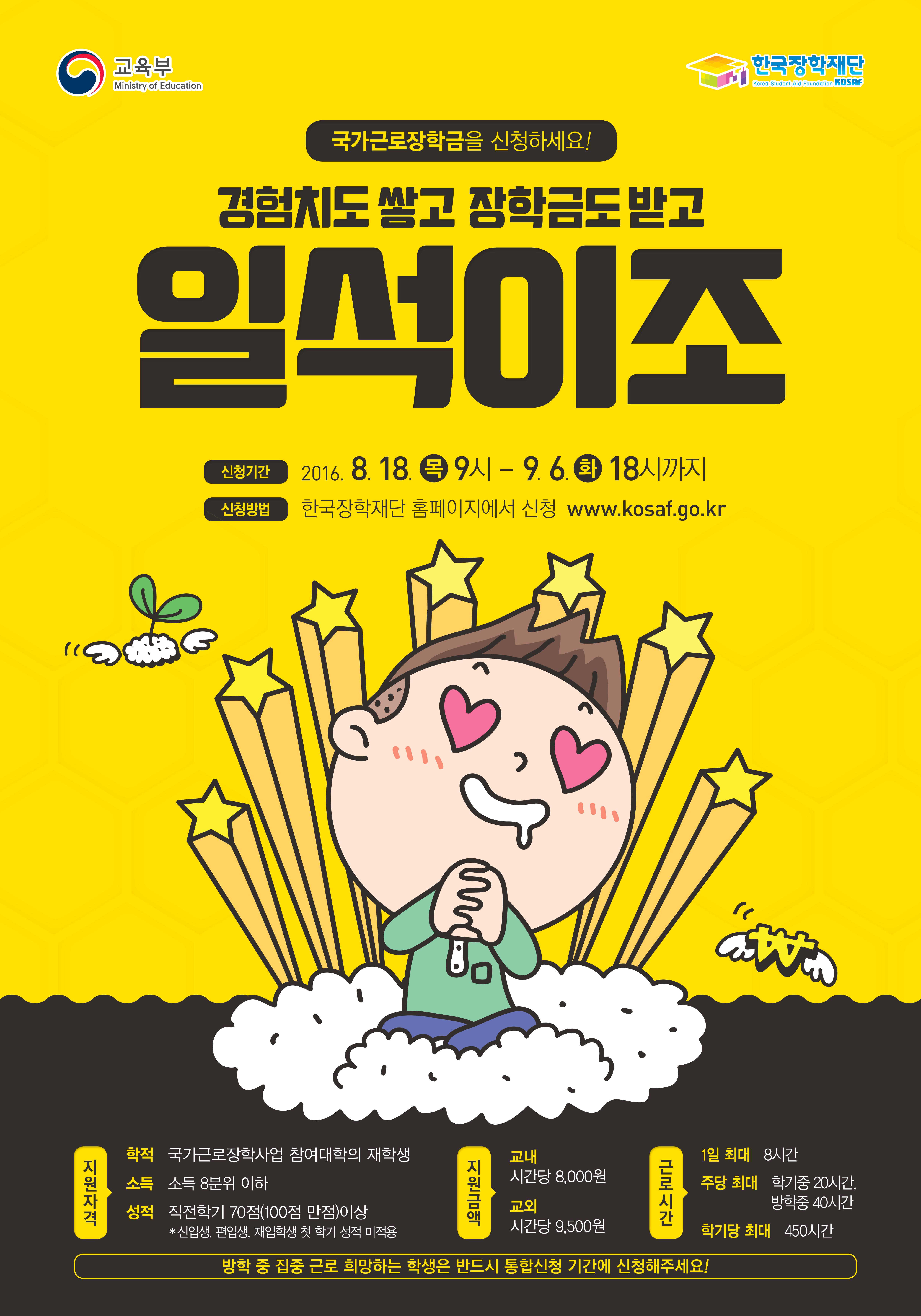 [한국장학재단] 2016학년도 2학기 국가근로장학금 2차 신청 안내