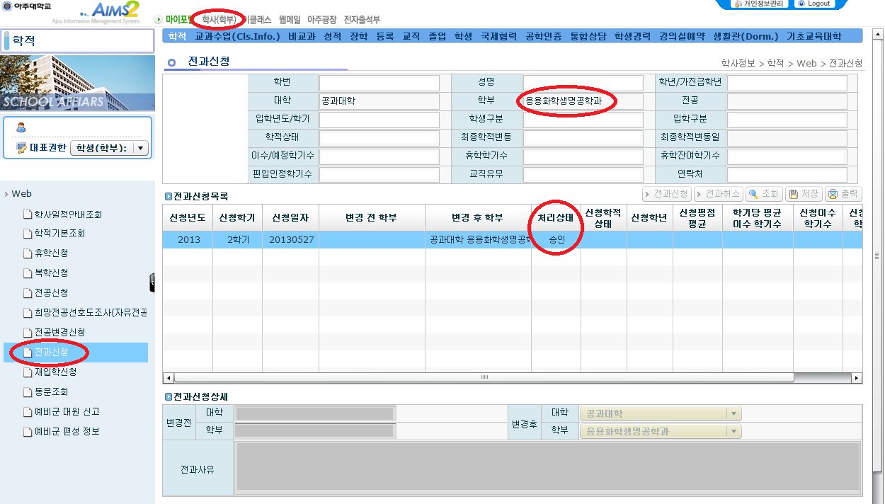 [학부] 2016-1학기 전과 확정 알림 및 학사안내