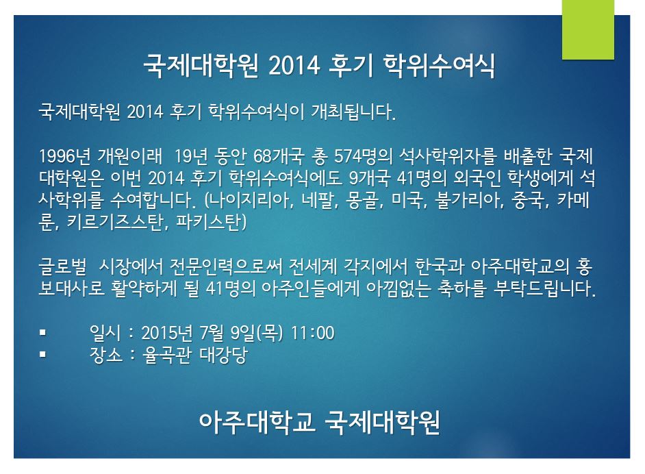 | 628 | 행사 | 국제대학원교학팀 | 2015-07-07 | ||