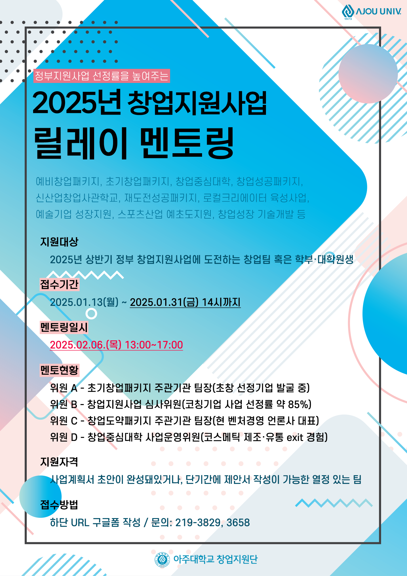 | 23294 | 기타 | 창업지원팀 | 2025-01-23 | ||