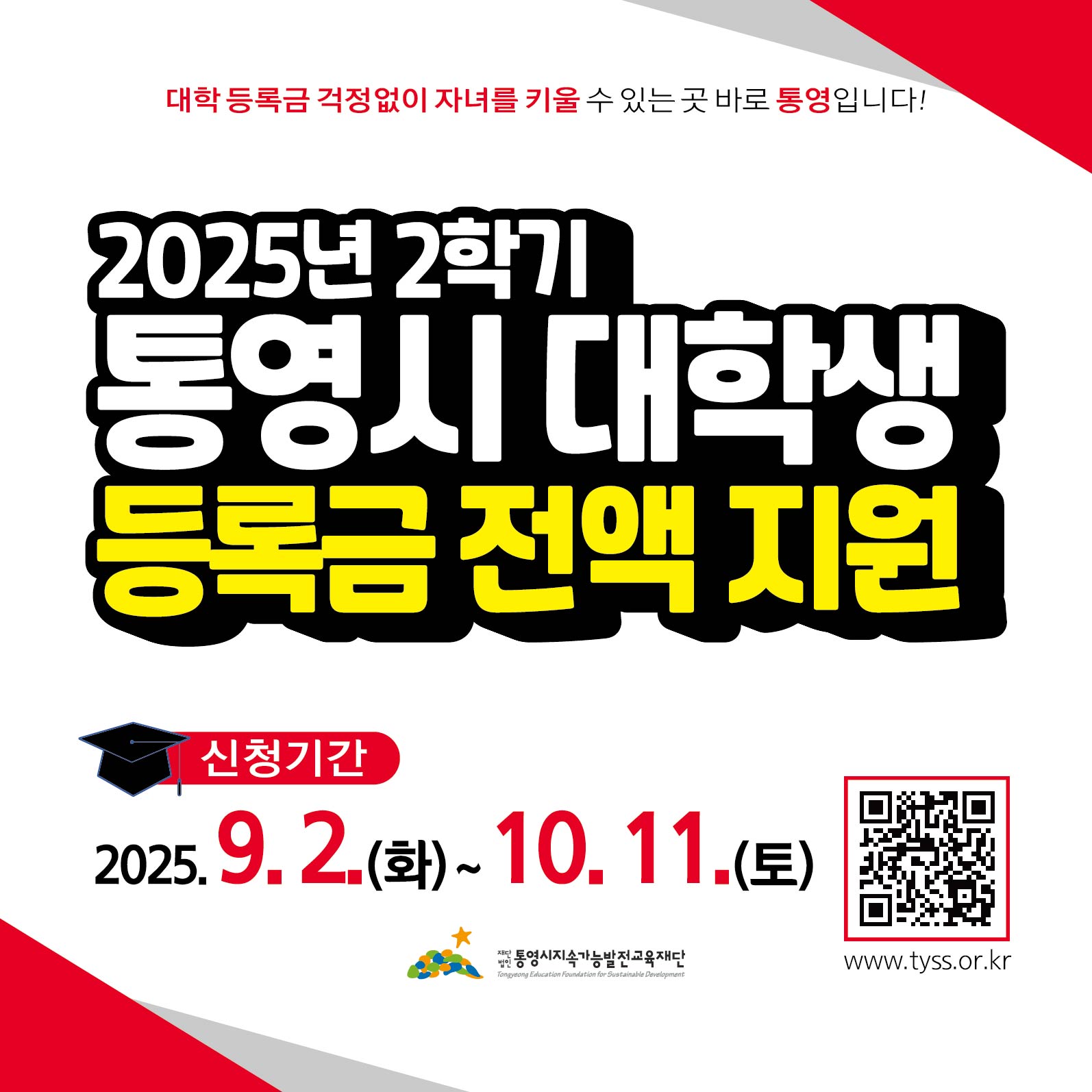 [교외장학] 2025년 2학기 통영시 대학생 등록금 전액 지원사업