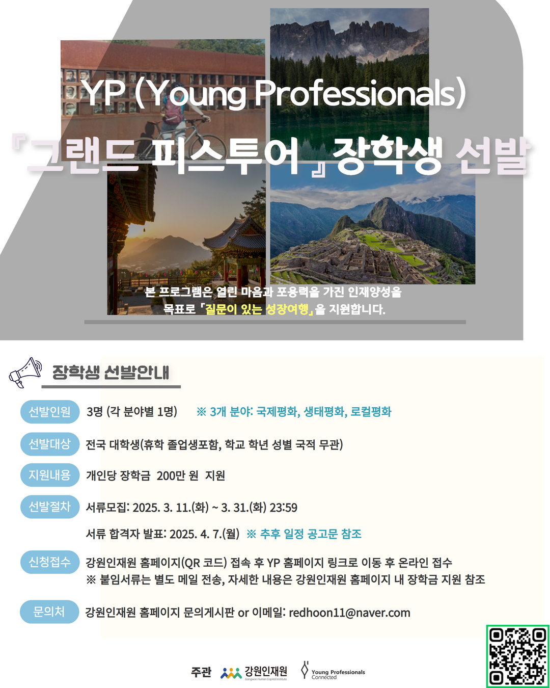 YP(Young Professionals)가 후원하는 2025년도 [그랜드 피스투어] 장학생 선발