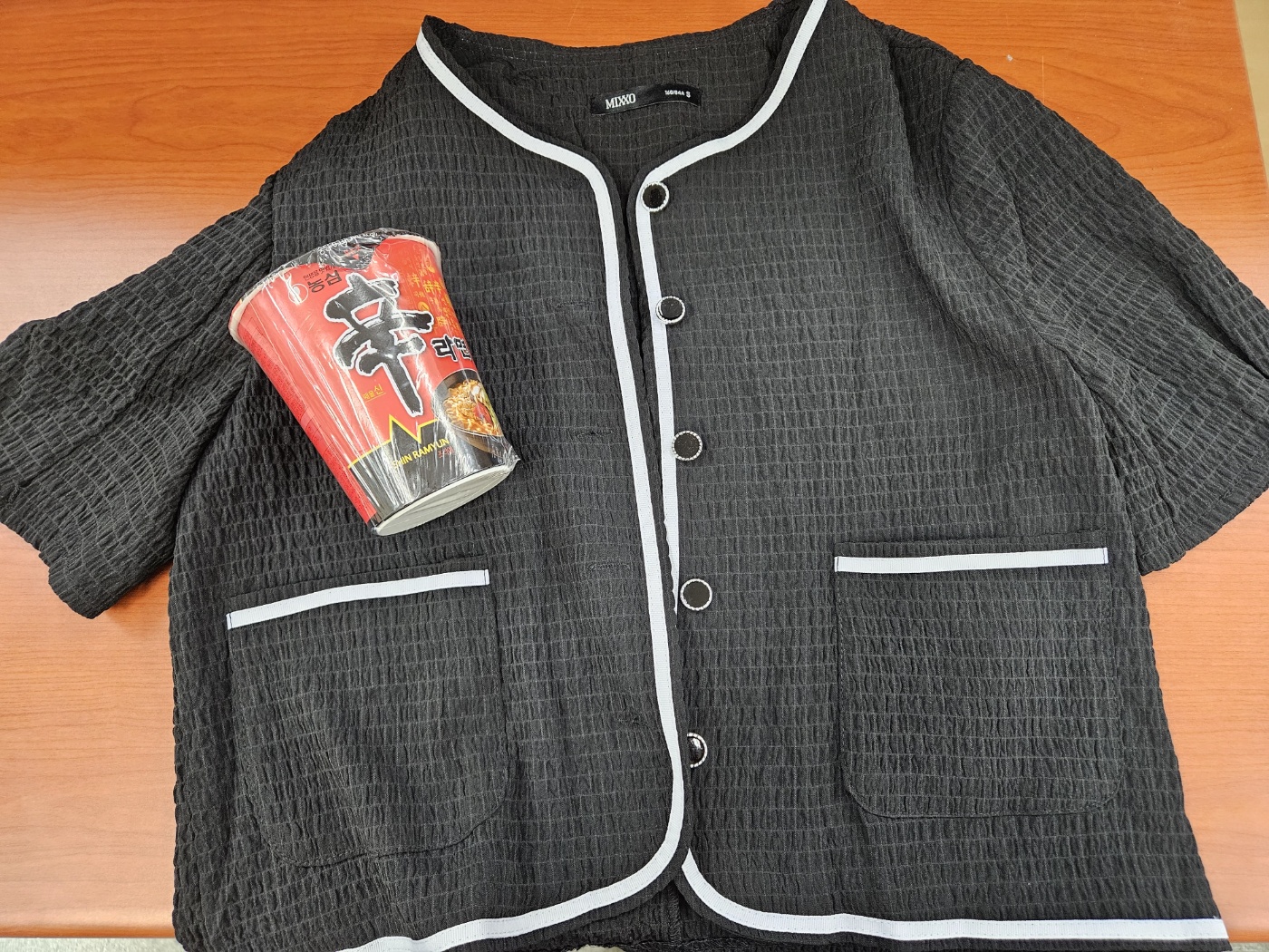 미쏘 가디건, 컵라면을 보관 중입니다.