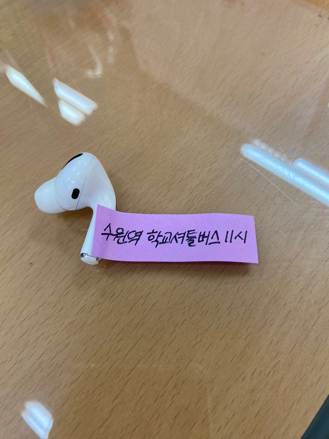 에어팟 한쪽을 보관하고 있습니다. (습득처 : 수원역방향 학교셔틀버스 11시타임)