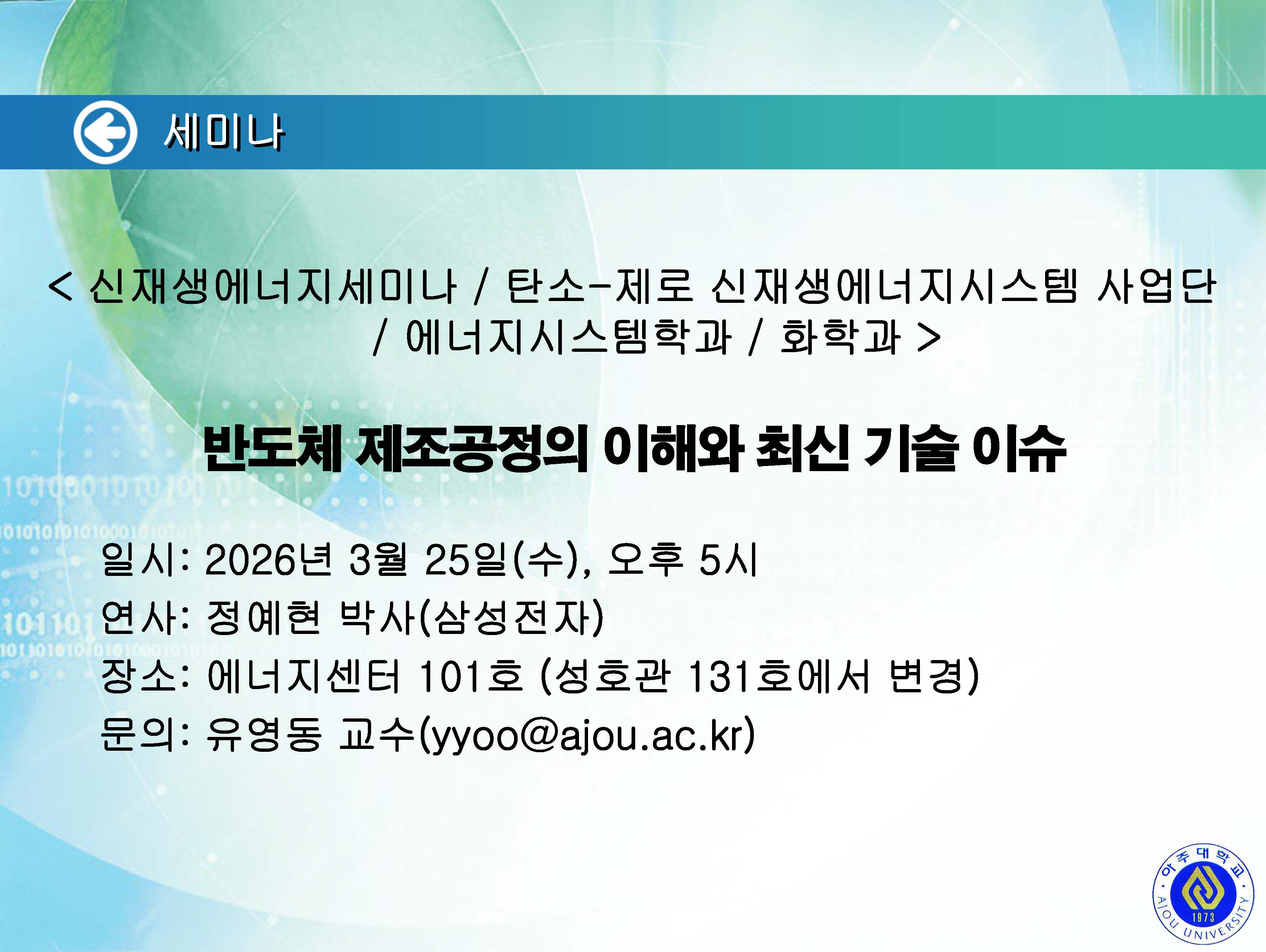 | 1897 | 세미나/포럼 | 교내 |