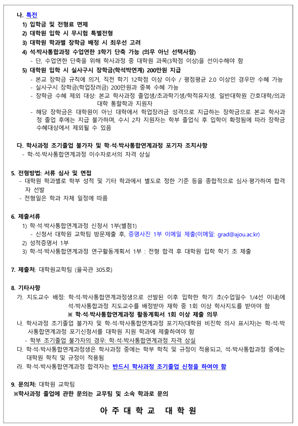 [공지] [자연대/대학원] 2026학년도 전기 학석박사통합연계과정생 모집 안내