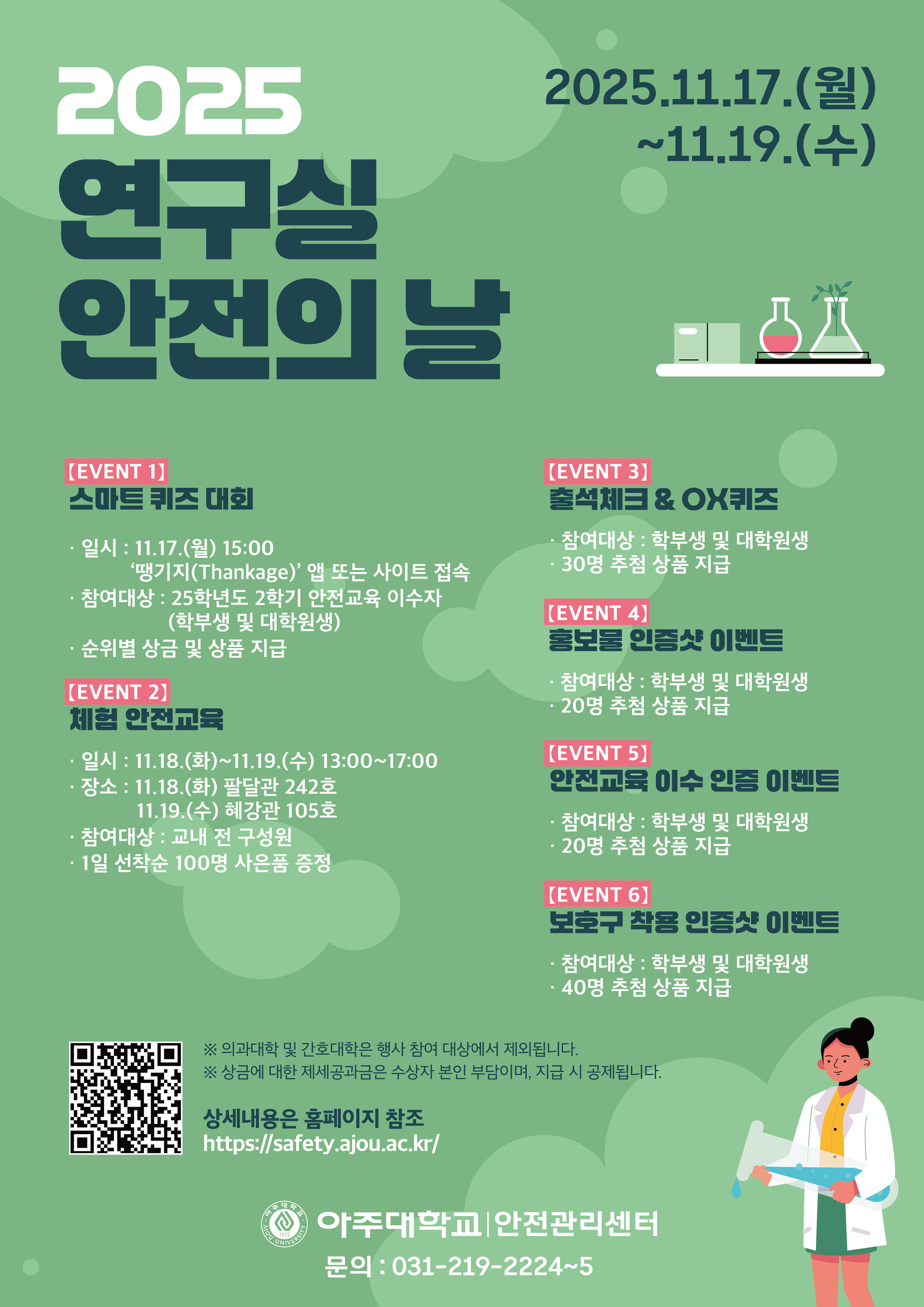 [학사] 2025학년도 '연구실 안전의 날' 행사 실시 안내