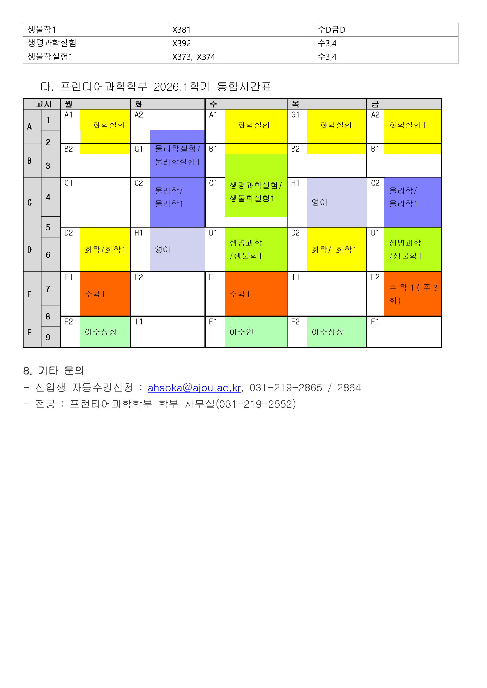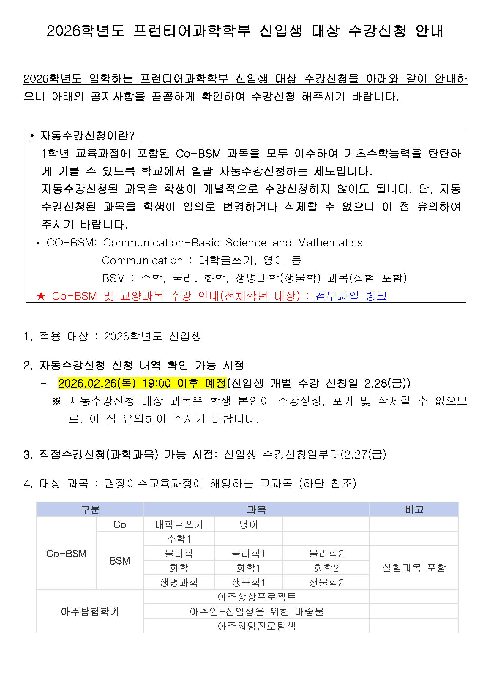 [공지] [학부/자연대] 2026학년도 프런티어과학학부 신입생 대상 수강신청 안내