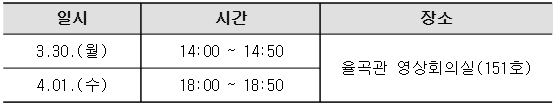 그리고 수업시간 중복 또는 불가피한 사유로 교육에 참석하지 못한 학생을 대상으로 아래와 같이 보강교육을 실시하오니,