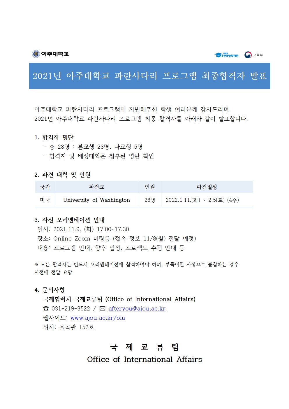 | 648 | Outgoing | 국제교류팀 | 2021-11-07 | ||